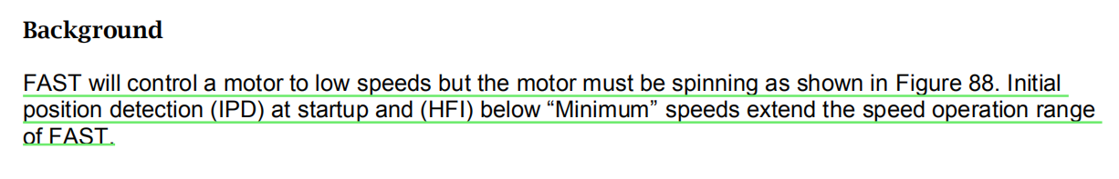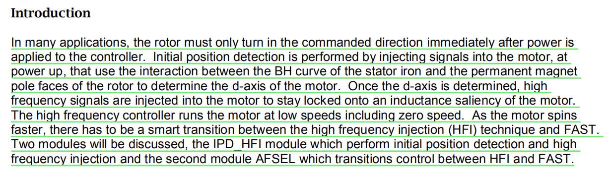 如题所示,在motorware中例程proj_lab21展示了低速和零速是用IPD_HFI,中高速是通过AFSEL切换到FAST观测器,但是motorware其他的例程中并没有使用IPD_HFI,全程只有FAST观测器在运行,是如何做到低速和零速的角度估算呢?而且instaspin_labs文档说明中也表示FAST观测器本身角度估算是不能覆盖到低速和零速的,这点觉得很奇怪,望解惑,谢谢!