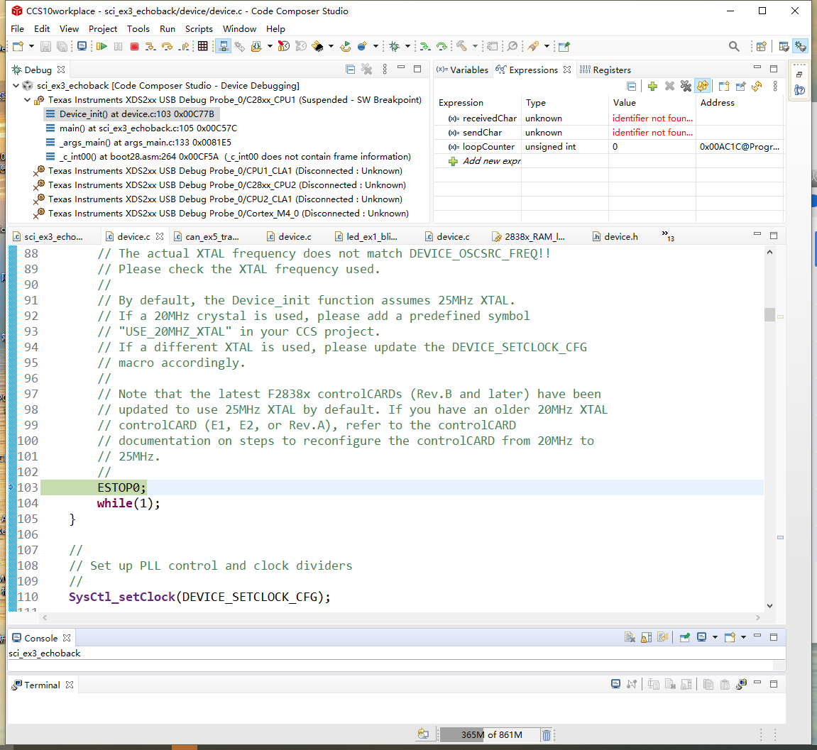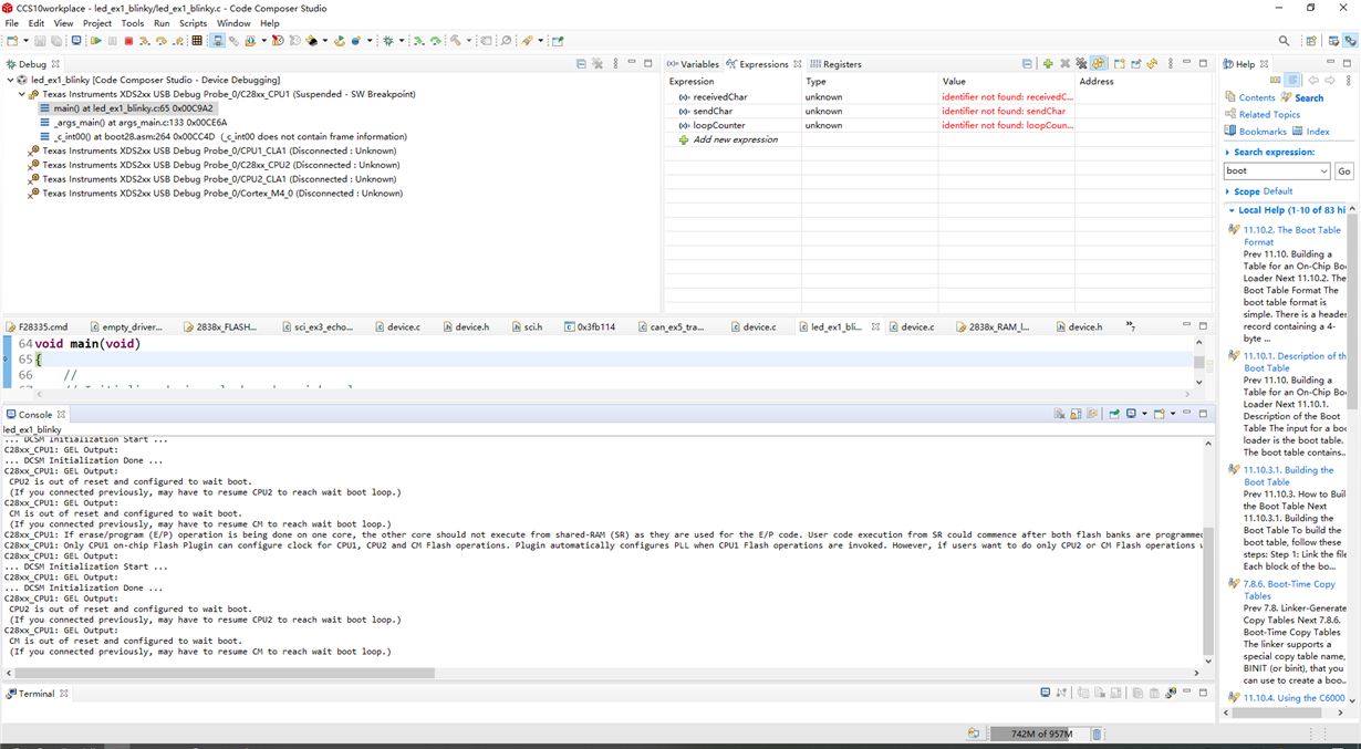 在对芯片进行debug led_ex1_blinky.c,之前都是可以直接出现小灯亮的情况。