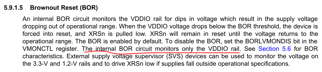 F280049自带POR和3.3V的BOR,1.2V采用外部电源供电,请问1.2V是否需要外部BOR电路?TI有没有推荐的1.2V电源监控芯片?