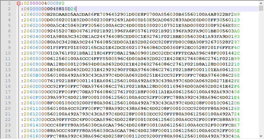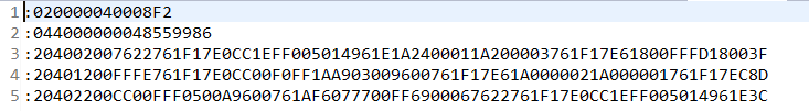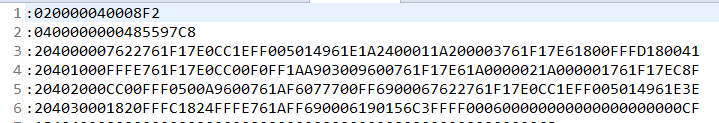 以上图HEX文件为例,我发现第二行为:0400000000485597C8