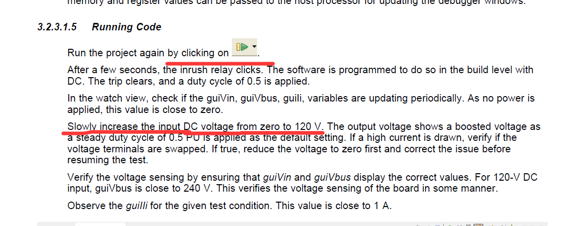 在进行开环调试的时候,我是应该先上到一定的输入电压(比如直流120V),再点击debug按钮进行烧程序吗?这样做好像有点不规范和危险。