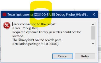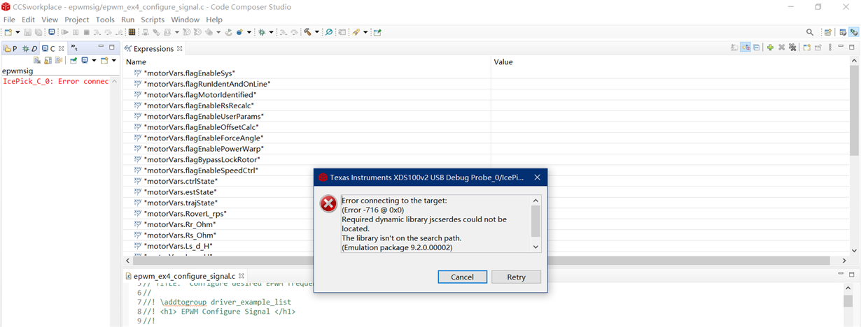 最近运行EPWM示例提示错误 “ Error 716,找不到动态库”。