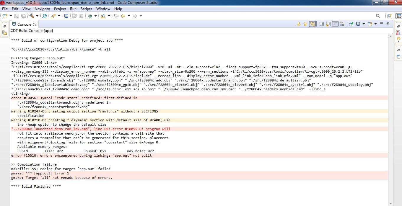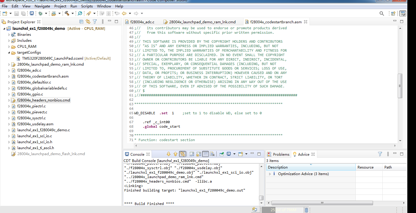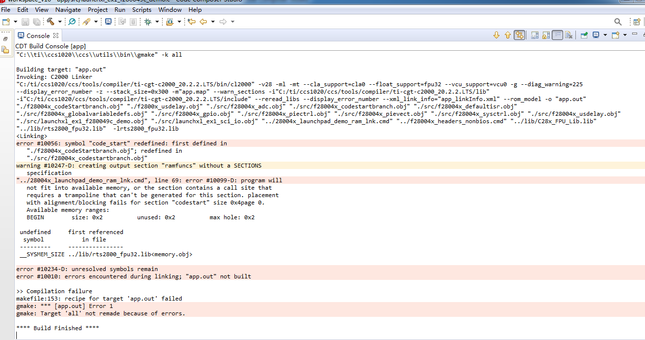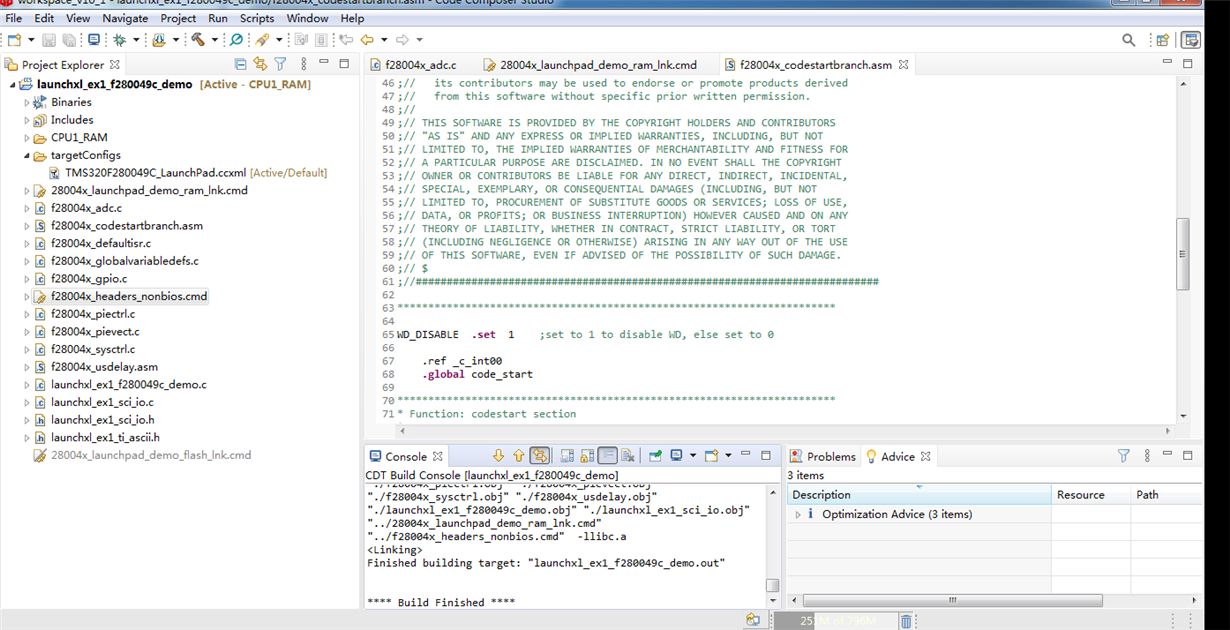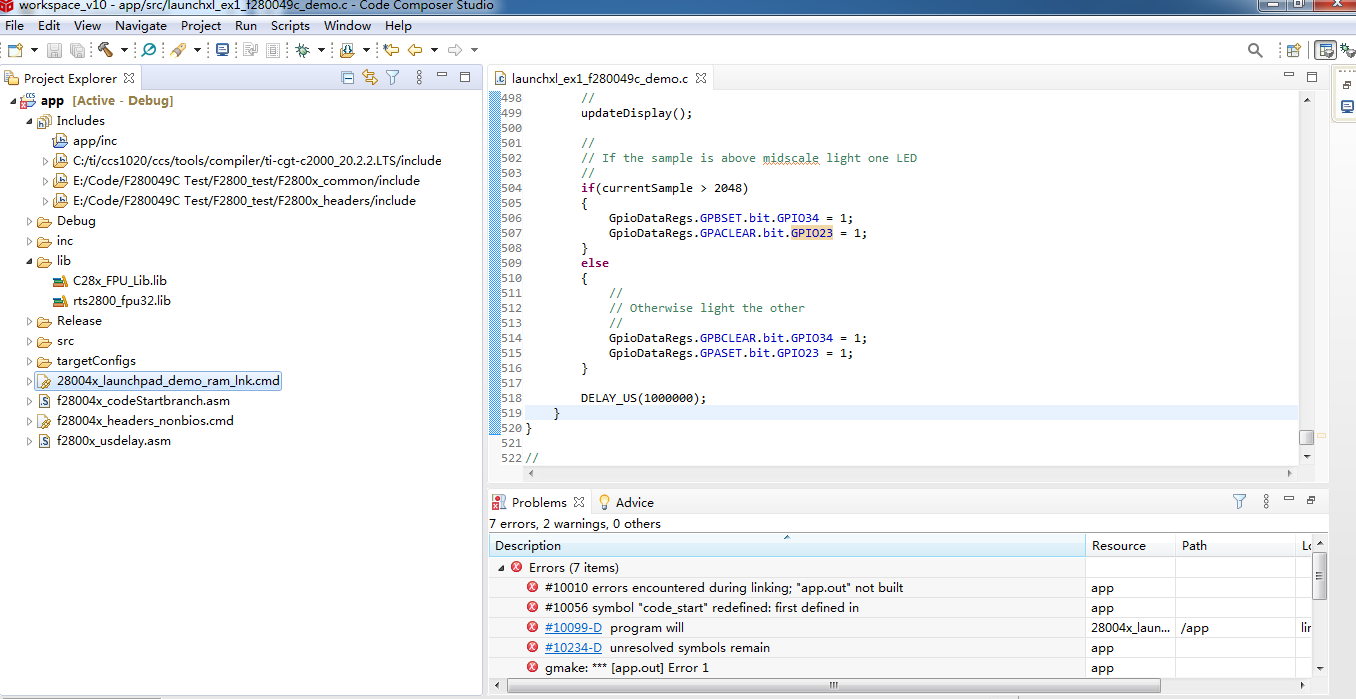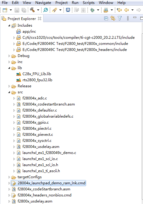 使用LAUNCHXL-F280049C开发套件把C2000Ware_3_03_00_00\launchxl\f28004x\launchxl的例程移植到自建工程里编译不通过