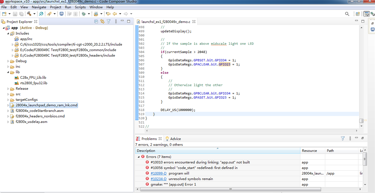 用 LAUNCHXL-F280049C开发套件把C2000Ware_3_03_00_00\launchxl\f28004x\launchxl的例程导入到CCS中程序能正确运行,把280049工程中的文件移植到原来28069自己在使用的工程中,程序编译不通过。