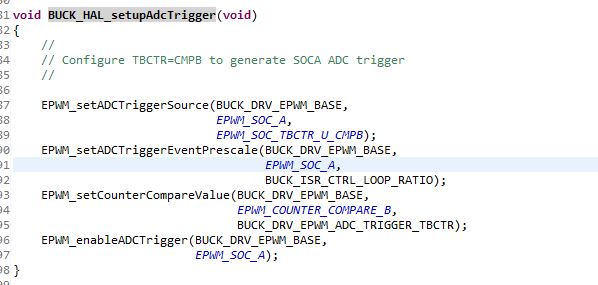 其中BUCK_ISR_CTRL_LOOP_RATIO为1,BUCK_DRV_EPWM_ADC_TRIGGER_TBCTR为500