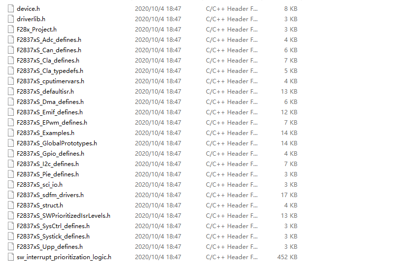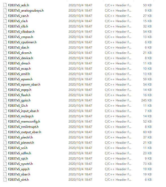 请问,这些头文件在哪里能找到,编译的时候总是报错,说缺少这些头文件,但是翻找了TI对28377s的配置文件夹均未找到这些头文件。
