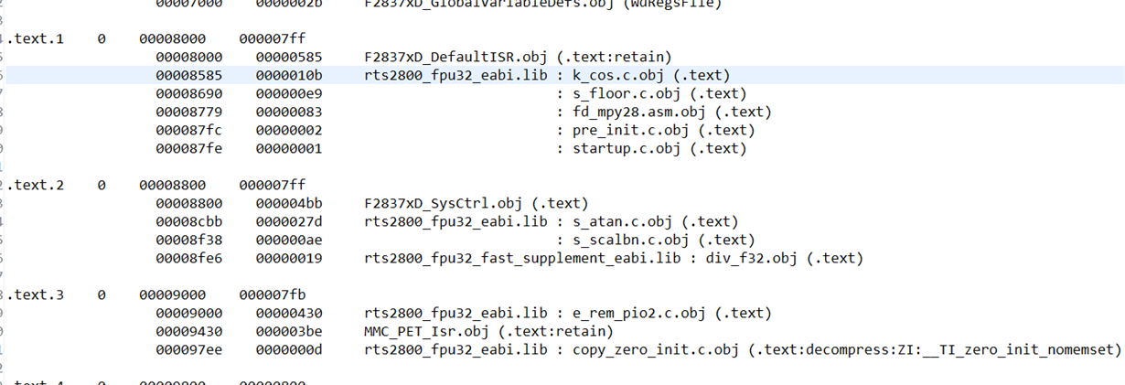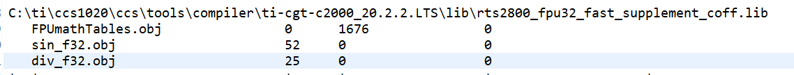 我建立了一个eabi输出模式的28377工程,按文档FASTRTS-SW-LIB-UG-V2.04.00.00加入rts2800_fpu32_fast_supplement工程后发现,编译后在map文件中发现三角函数计算并没有调用相关函数,请问是哪里出了问题?附上工程配置