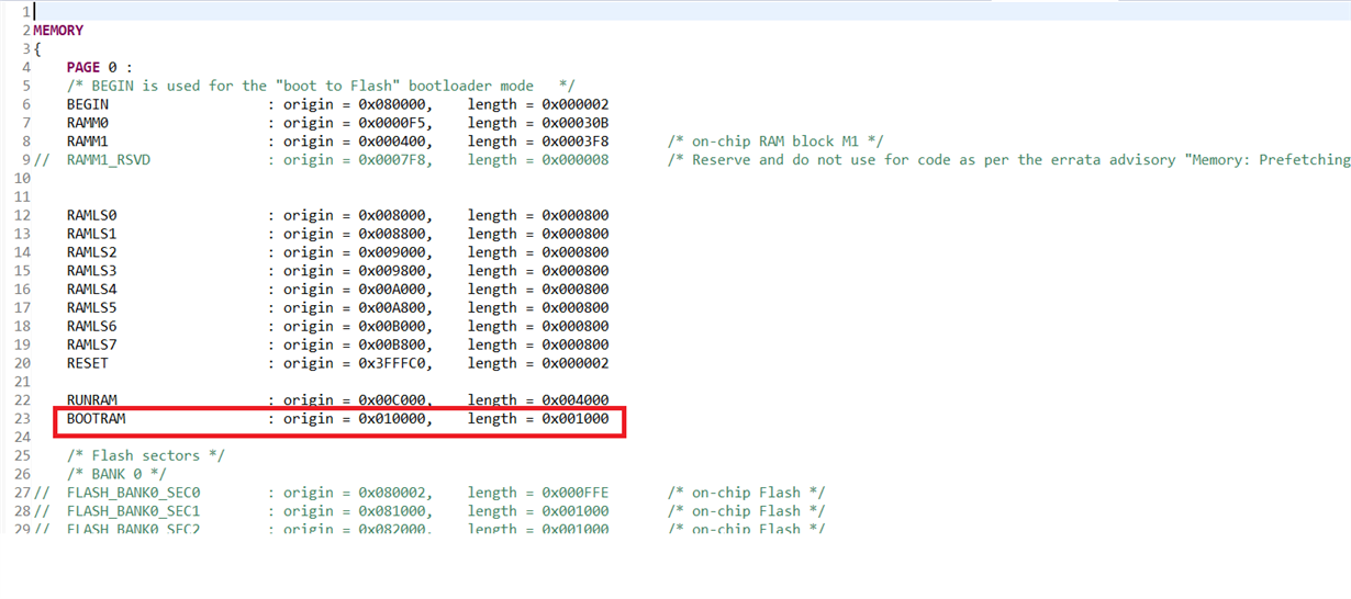 如上图:用程序如何获取BOOTRAM这段定义的首地址0x010000