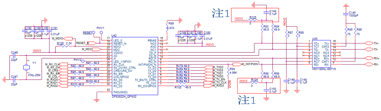 1、DSP及DP83822测量供电电压、时钟、复位引脚正常。DP83822的PHY地址选择默认0X01。