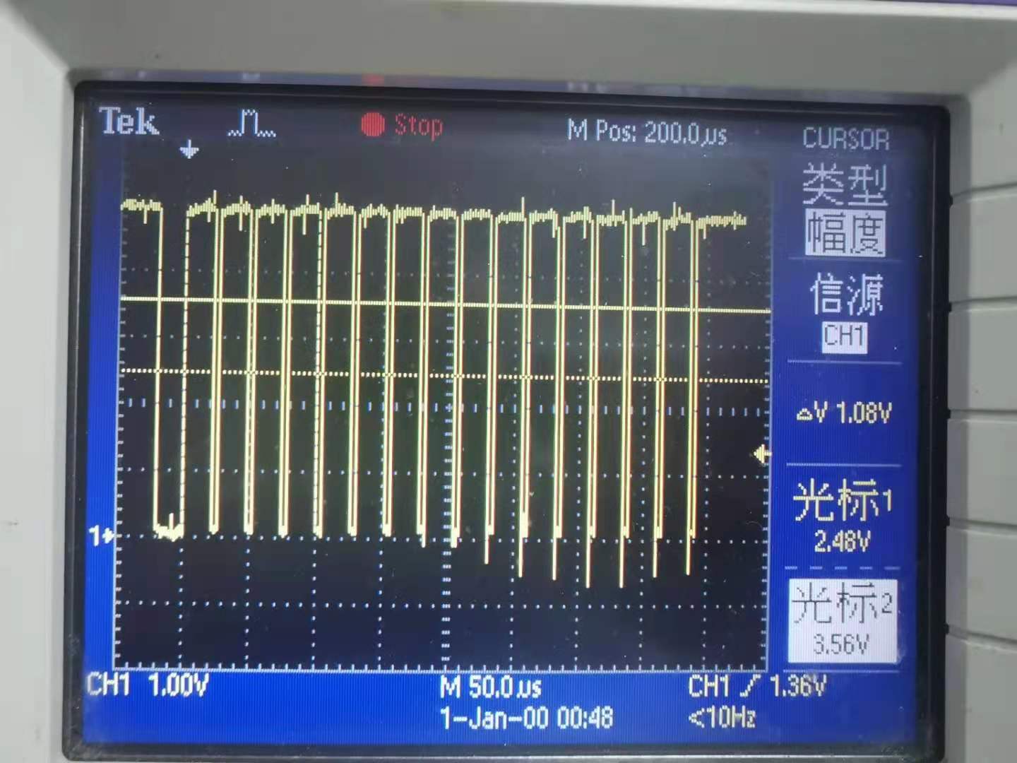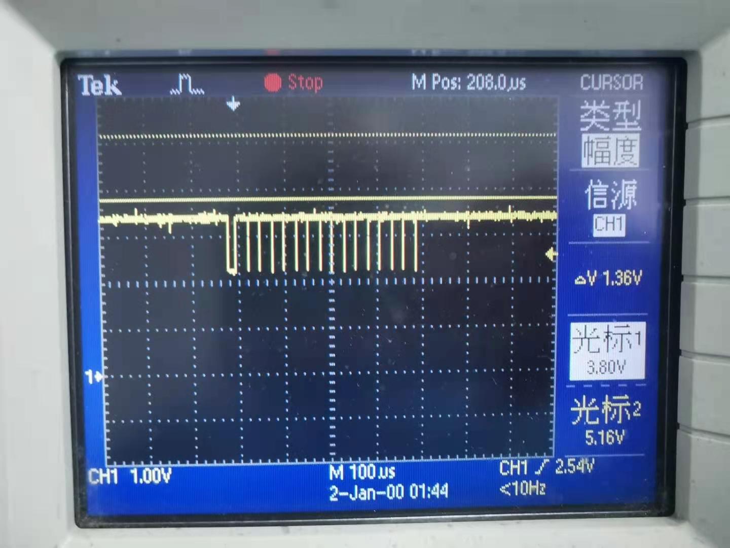 此图为缓冲器后端波形也就是DSP28034芯片GPIO30脚波形(此处波形电压异常,高电平为3.3V,低电平为2V)。