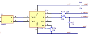 此外,这几天查看相关帖子时,一些帖子提到的CANH与CANL之间的负载电阻、以及在GPIO30口串接小电阻来避免灌电流等方法我都试过,并没有解决问题。