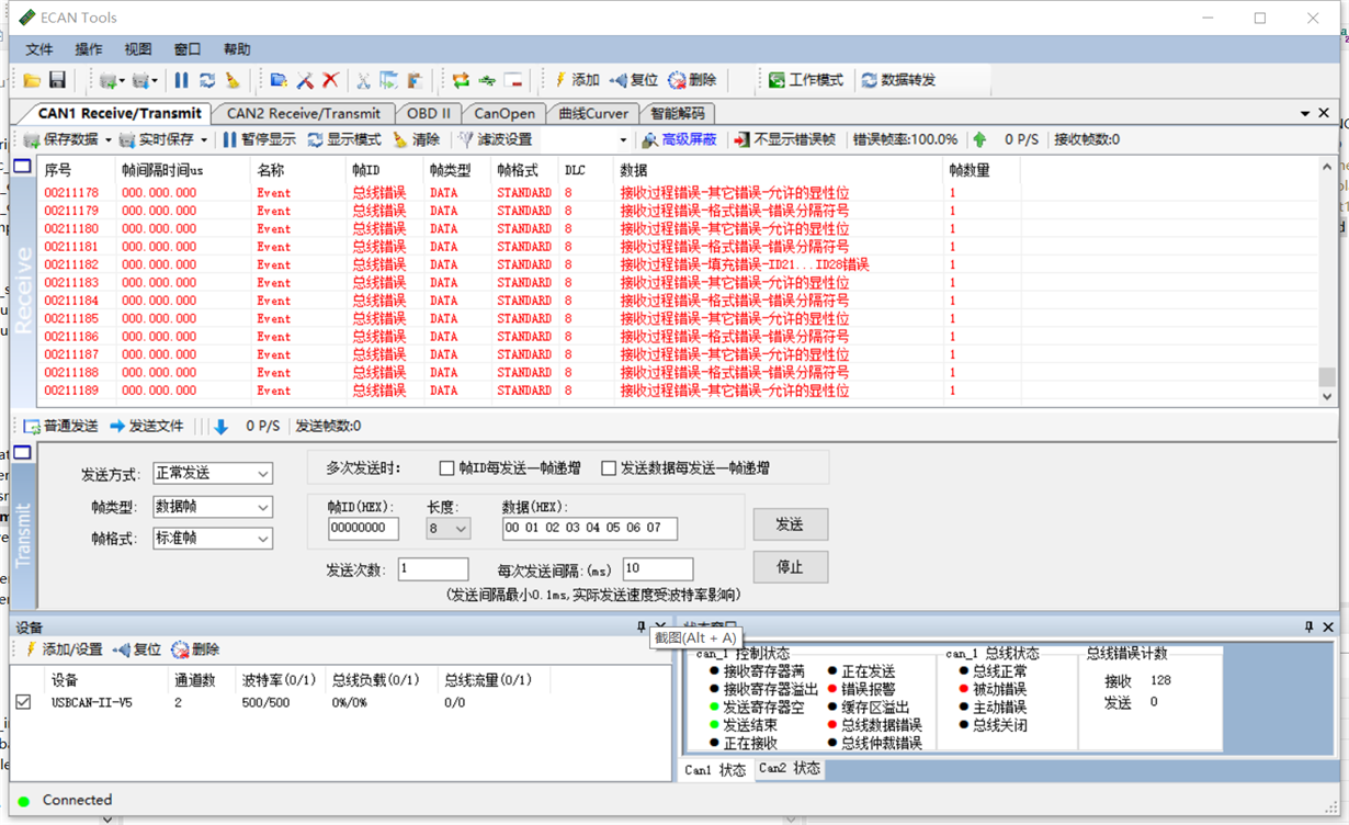 使用can_ex4_simple_transmit例程,仅仅改了引脚,接线正确,无法识别波特率,can总线一直不通是什么原因?