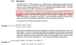 我的问题是:为什么在“C2000 Digital Control Library Version 3.4 User’s Guide”中要把同一个3阶补偿器分Direct Form 1 (Third Order) 和Direct Form 2(Third Order) 两种形式,而且还是Direct Form 2 (Third Order) 的鲁棒性比Direct Form 1(Third Order) ,建议使用Direct Form 2(Third Order) ,他们的区别道理在哪里?