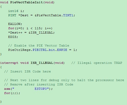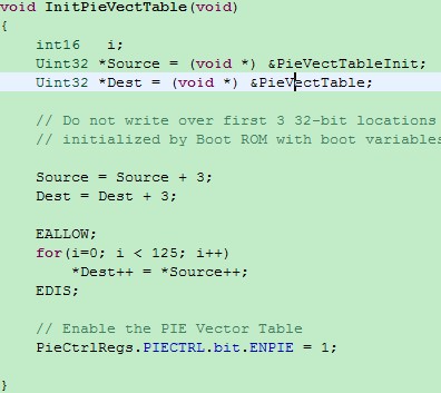 这与其他通用例程的 InitPieVectTable();函数不太一样,如