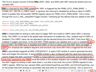 TI的这个案例中专门利用一个中断(ISR1)执行PWM相关参数(PRD、COMPA、COMPB....)寄存器的更新,环路计算是在另外一个中断(ISR2)中执行。