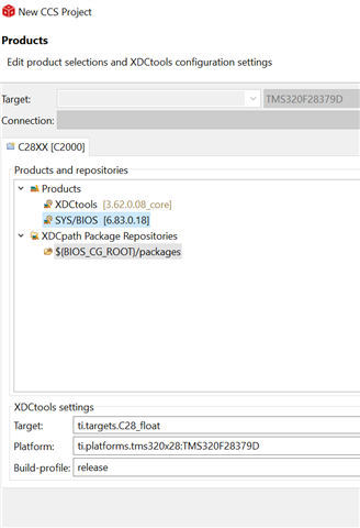 另外我下载了最新的bios,用的CCS10.4.0,在新建platform中,C2800下找不到TMS320F28379D这款芯片,在以下几个BIOS版本中都没找到