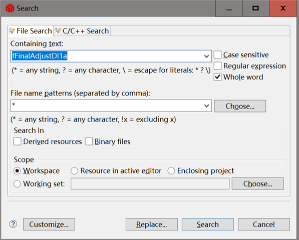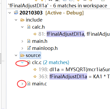 搜索结果默认是不展开, 怎么设置让基搜索后自动展开? 如第二图中的clc.c行, 默认是如main.c行不展开的