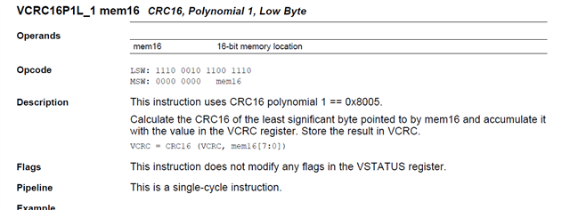 由于项目需要,我需要把一个28377d上的工具移植到28335上,但是其中有个函数使用VCU计算CRC校验值,我尝试使用C编写的校验函数,但是两者得出的结果不同,我想了解的是这个指令具体是怎么计算CRC的。以上提到的文档我阅读过,但是没有找到答案