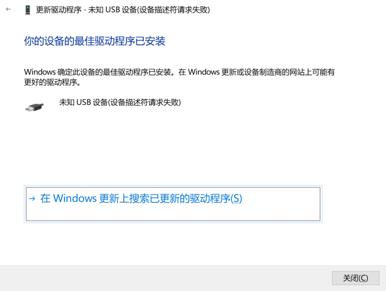 3.重新插拔USB接口,但PC依然显示未知USB设备(获取设备描述符失败)