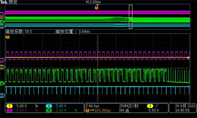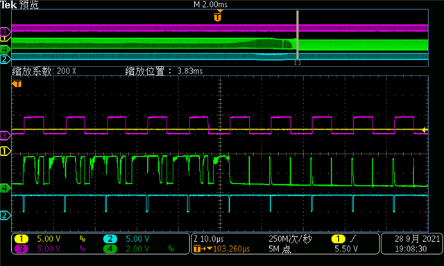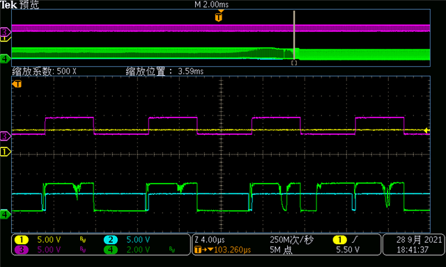 最近降TIDM-02000基于PCMC的程序移植到280025C,测试发现同步整流PWM波在峰值电流大于给定电流的时候波形异常。