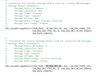 最近在用280049配置CAN模块时,根据提供的例程,引用库函数CAN_setupMessageObject进行配置邮箱。例程中收发邮箱的配置都是使用这一个函数配置,而函数CAN_setupMessageObject中只对IF1进行操作,那么IF2的相关配置在哪进行呢?库函数默认IF2做数据接收,那么接收邮箱的配置为什么也在CAN_setupMessageObject函数中进行?