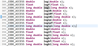 请问在math.h文件里面,有没有以e为底的自然对数函数呀,我只找到了下面这张图片的log函数,没找到以e为底的
