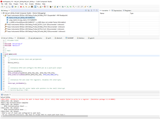 C28xx_CPU1: Failed to remove the debug state from the target before disconnecting. There may still be breakpoint op-codes embedded in program memory. It is recommended that you reset the emulator before you connect and reload your program before you continue debugging