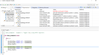 图中在我断点处GPADAT的值应该是0xAAAAAAAAA,但Expressions中监测到的值是0xAB8008AA。