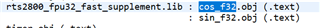 总结一下,其实你现在就是想知道如何正确地调用rts2800_fpu32_fast_supplement.lib库来进行三角函数运算的是吗?