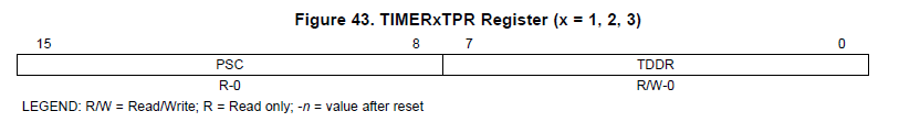 分频系数被写入PSCH和PSC,而不是TDDRH和TDDR。