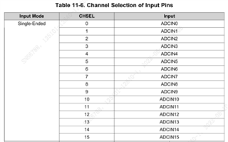 如Adcdregs.ADCSOC0CTL.bit.CHSEL=3表示选择通道ADCIN3,具体指pin脚D3,但是ADC D只有6个引脚,当Adcdregs.ADCSOC0CTL.bit.CHSEL=10时,指的是哪个引脚呢?