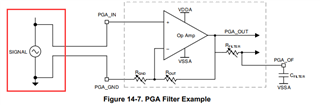 The positive input of the comparator can be driven from an external pin or by the PGA.