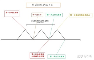 如图1所示,电机控制电流ADC采样、坐标变换、电流环调节器等模块都处于ADC采样中断中,采样中断触发源是ePWM计数值等于Timer period。那么其余模块(坐标变换、电流环调节器等)是在中断触发时刻开始执行的吗?查到有文献显示电流环调节器在计数器等于0时刻开始计算,如图2所示。同在ADC中断下,难道执行时间不一致吗?
