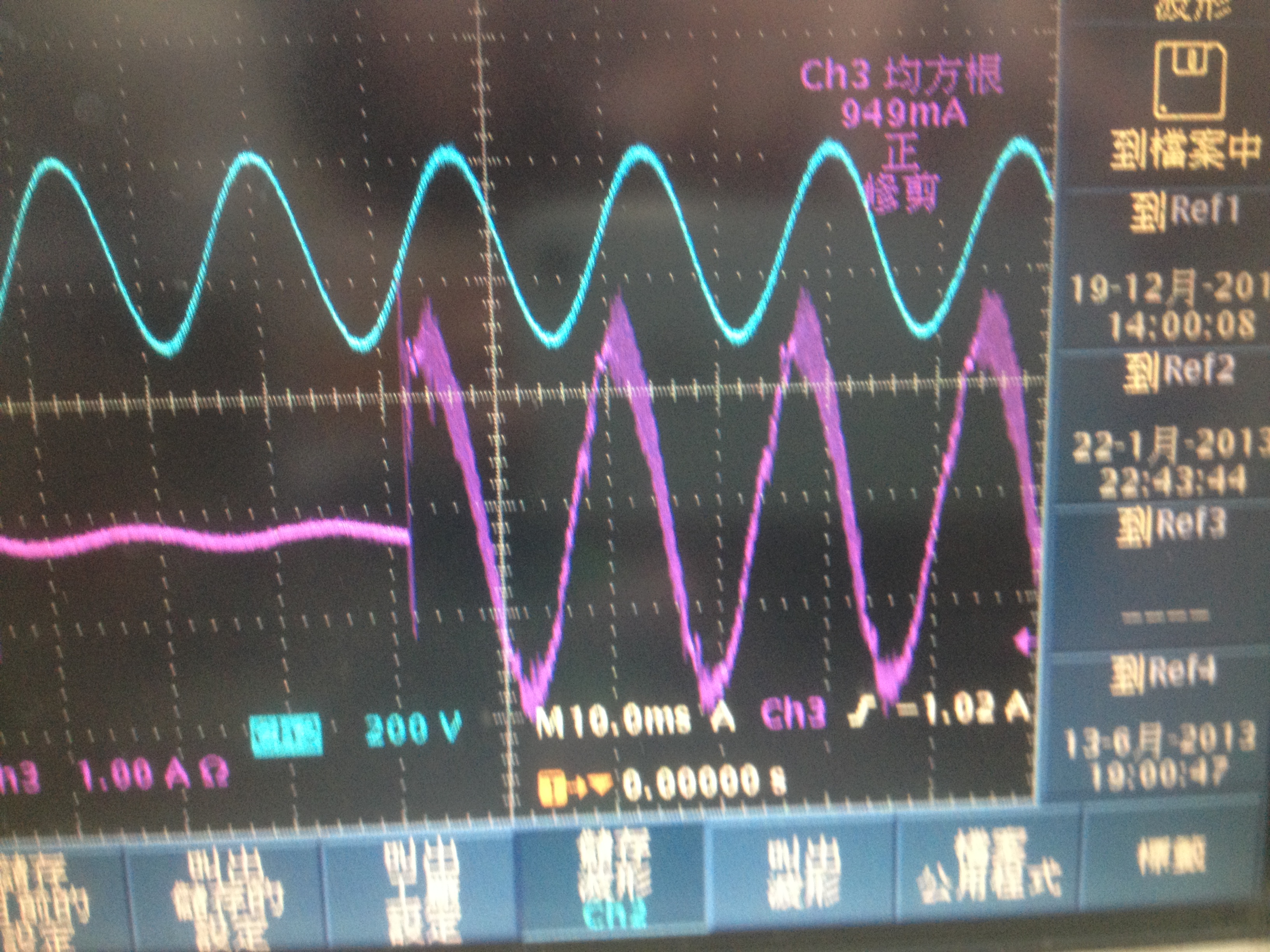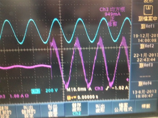 下面是我测试的结果(蓝色:AC Source 电压,紫色:inverter输出电流)