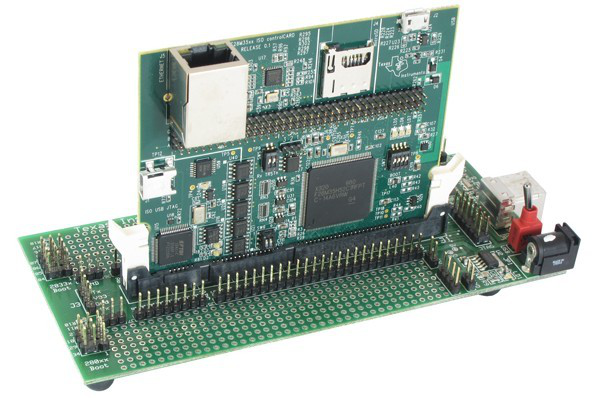 去掉开发板上的 R48-R56电阻,可以使得开发板上的板载仿真器被屏蔽,然后就可以使用外部仿真器。