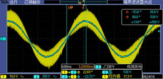从结果可以看出,50.1VDC输入,17.9V线电压输出,相电压峰值为14.61VDC,远低于应该输出的比例28.76VDC.(28.76VDC的计算依据 50.1x310/540=28.76VDC)