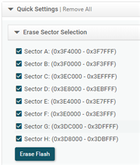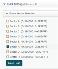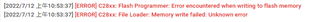 在应用中,需要把“基本程序“”和“数据”分别烧录进FLASH中。第一步:烧录“基本程序”,正常擦除所有扇区进行烧录;第二步,烧录“数据”,仅擦除FLASH F烧录,会出现下图所示的Error,