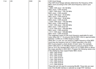 MAC_MDIO_Address Register 中描述MDC clock在(1.0~2.5MHZ左右)
