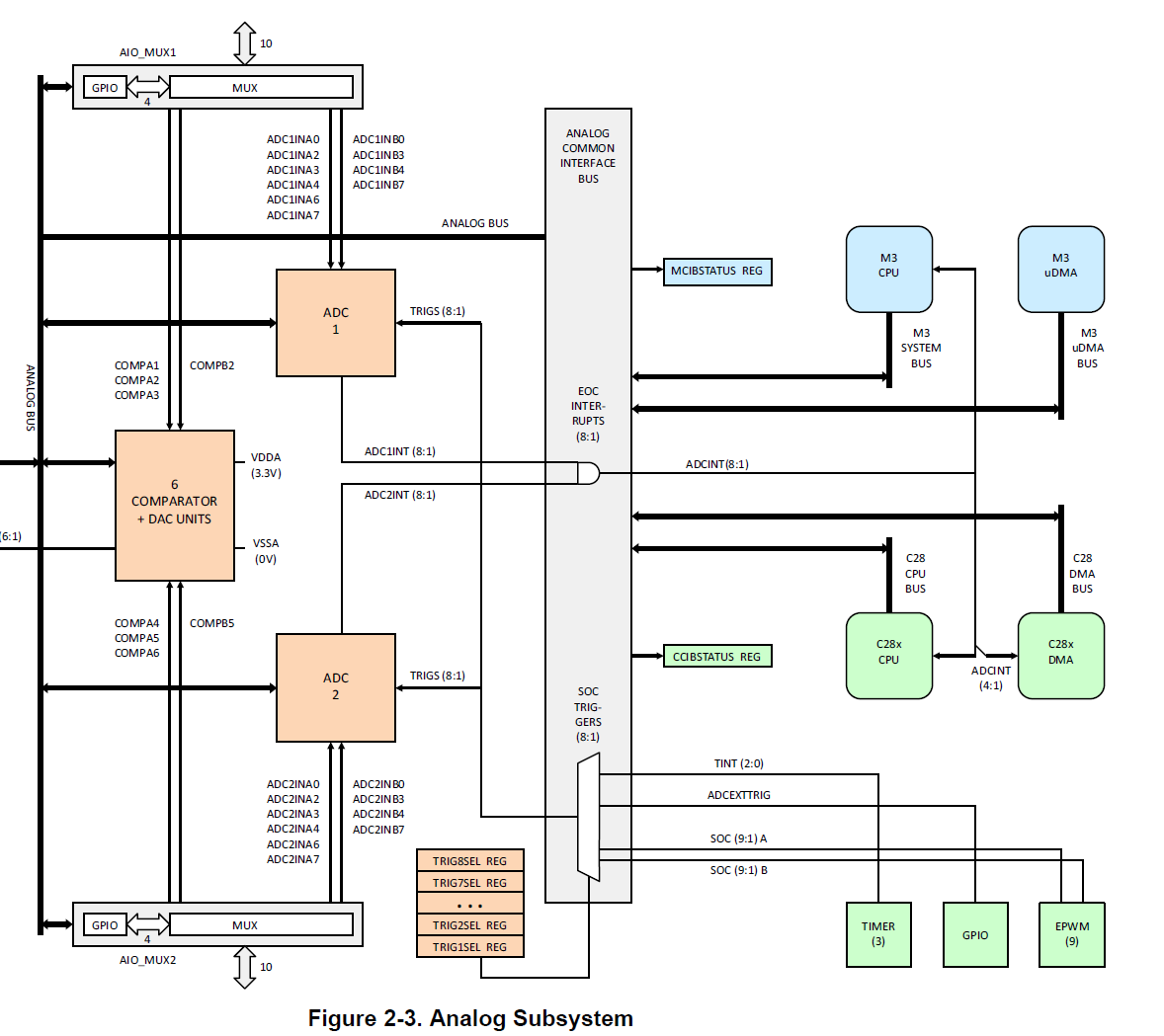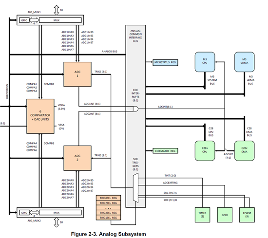 您好!我想请教下F28m35H52C1的ADC可以采多少路?有些帖子上说ADC输入通道并没有引出来到AIO引脚,即non footpin,那这部分在datasheet的哪里做了详细的说明?