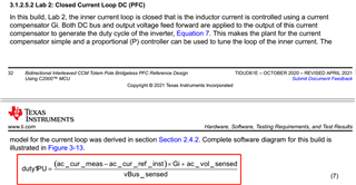 问题2:duty1PU的输出由电流环输出、电压前馈两部封相加组成,电压前馈= ac _ vol_ sensed / vBus _ sensed,电流环输出部分为什么要除以vBus _ sensed?
