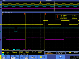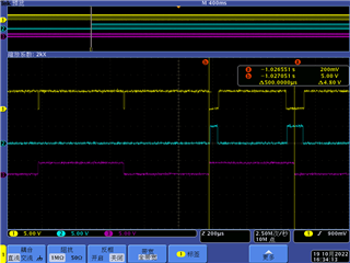 下图中通道1为PWM1B波形,通道3对应PWM周期中断,且电平切换处对应CTR=0,(通道2波形可忽略)