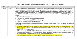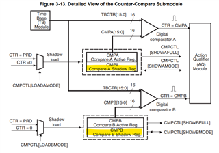 TMS320F28335: epwm模块设置工作在增减计数互补模式,比较值CMP从0切换到非零值时,第一个PWM周期的波形缺少上升计数部分的脉宽