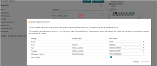 如上图所示,1处显示工程使能了sysconfig如果要更换器件需要在sysconfig中操作,所以打开.sysconfig文件后,点击如图2处更换器件,后报错如图3处,这是为啥,说是cannot read property 'device' of undefined,请问是什么问题,有点看不懂,有什么解决办法