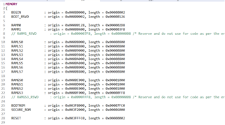 在28003x的勘误表后发现如同cmd文件注释的RAMM1_RSVD以及RAMGS3_RSVD一样,此部分的内存不能使用的。除此之外,还有一部分内存是在此cmd文件中没有进行分配的,即RAMM1_RSVD与RAMLS0之间的地址(0x0000 0800 到 0x0000 7FFF)。