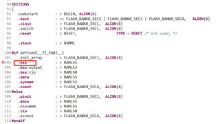 这个cmd文件是在C2000Ware里面复制到我的工程中的,由于我的项目用到了大量的全局变量,原cmd文件中分配的RAMM0,RAMM1,RAMLS0~7,RAMGS0~3的内存加起来都不够,目前编译工程后提示的错误是“ program will not fit into available memory, or the section contains a call site that requires a trampoline that can't be generated for this section. run placement with alignment/blocking fails for section ".bss" size 0x882c page 0.”