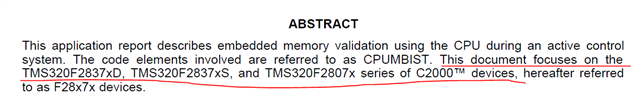 在F28004x上我们支持spracb9_C2000 CPU Memory Built-In Self-Test中提到的STL_March 和 STL_CRC函数。他们是C2000WARE中SDL的一部分——在libraries/diagnostics/目录下。
