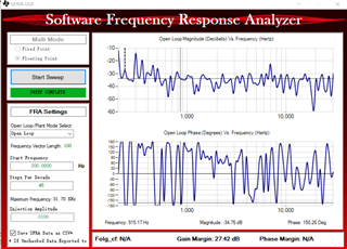 SFRA 的基波如下所示。 这是一种在电路上的小信号注入行为。 屏幕截图中注入的小信号幅度为0.01,而在user guide的图3-16中,该值为0.02。 注入的幅度会影响扫描结果以及电路工作点和容差。 我们不确定在代码方面是否存在其他差异。