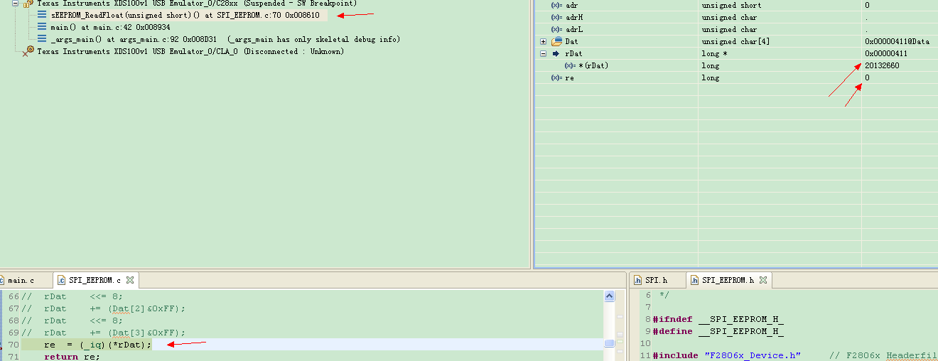 以上代码是一个完整的函数。在红色部分代码赋值时出现问题。变量re得到的值既不是rDat指向的地址,也不是rDat指向地址里的值。(是另外一个恒定值)