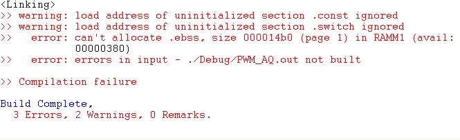 .stack .ebss .esysmem .econst .switch IQmathTables : IQmathTables2 FPUmathTables
