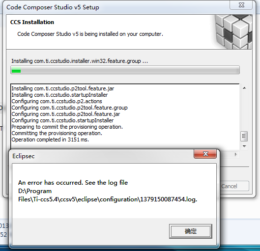 我的笔记本WIN7 32位的系统,之前没有装过CCS软件,但是现在安装CCS V5.4每次安装到这个地方就提示错误,然后 就不能安装了,显示错误自动退出安装程序。我已经退出360杀毒软件,关闭了电脑的防火墙。 请问,有遇到过同样问题的吗?